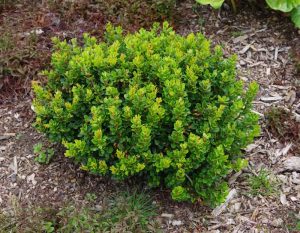 Rast: Ovaj grm obično raste nisko i široko, stvarajući gusti tepih zlatnih listova.